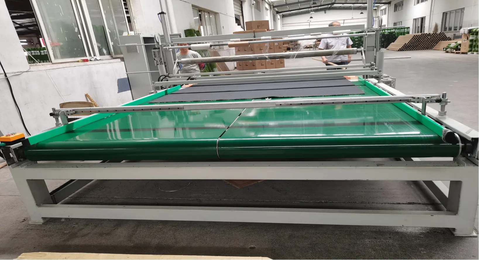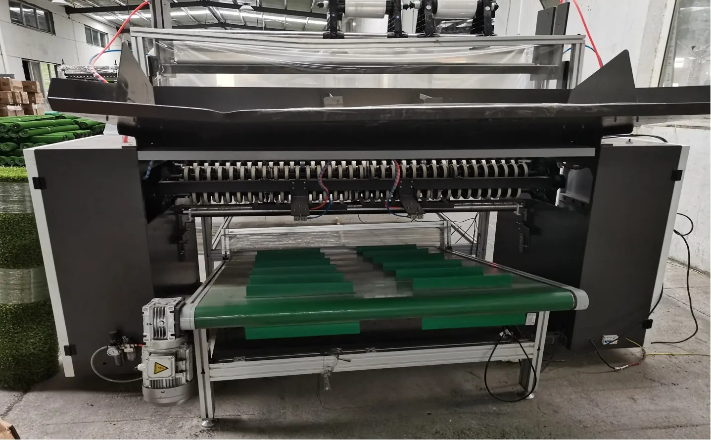 Recently, a new colleague arrived at our production workshop—a fully automatic artificial turf roll-wrapping machine! This machine is a veritable "roll-wrapping maniac", making turf packaging a breeze.